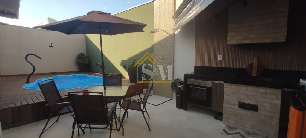 Excelente imóvel com 250m² de área total e 123m² de área construída. O imóvel conta com 3 dormitórios (sendo 1 suíte), 1 banheiro social, sala de estar e jantar, cozinha rica em marcenaria com fogão e coifa, lavanderia, espaço gourmet com churrasqueira, área de luz com cobertura retráril, piscina, e vaga para 4 veículos (sendo 2 cobertas).